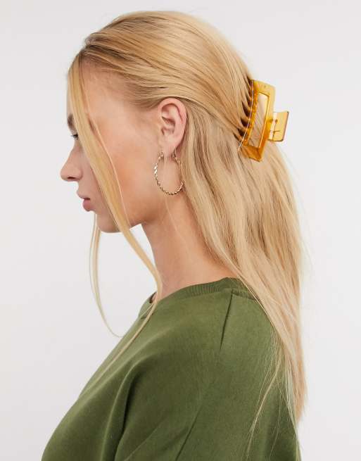 Asos Design Hair Clip Claw In Open Rectangle Brown Resin Asos