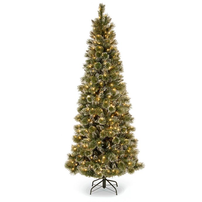 National Tree Company 7 1 2 Foot Pre Lit Glittery Bristle Pine Slim Christmas Tree Bed Bath Beyond